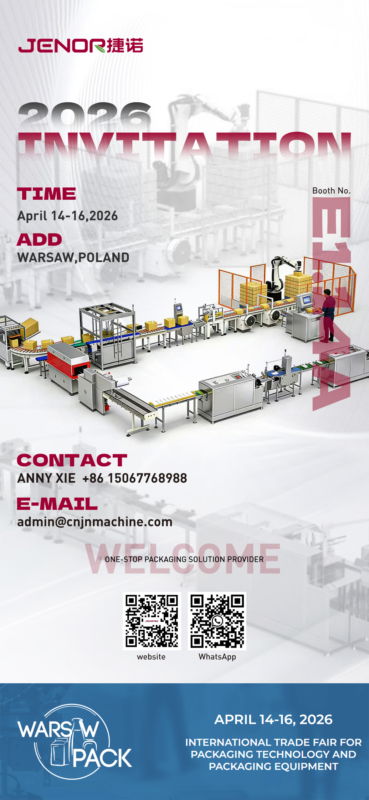 Nós, Jenor Machinery & Technology, sinceramente convidamos você a visitar nosso estande no Warsaw Pack 2026.